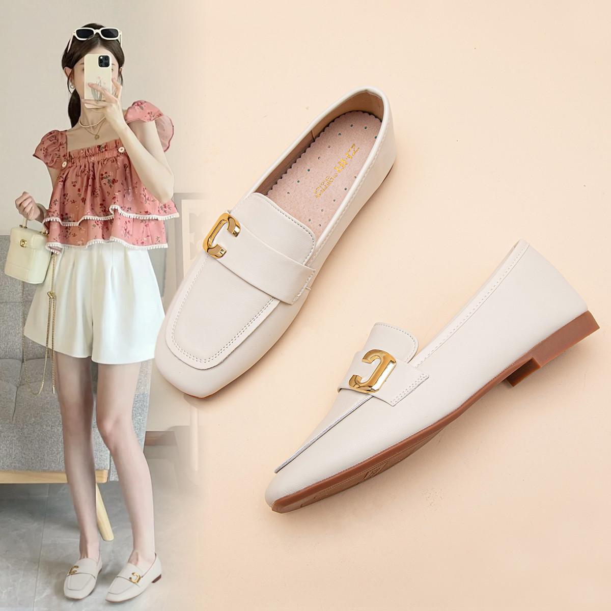 【牛剖层革】气质单鞋一脚蹬女鞋小皮鞋女平底鞋乐福鞋女鞋女单鞋 124800