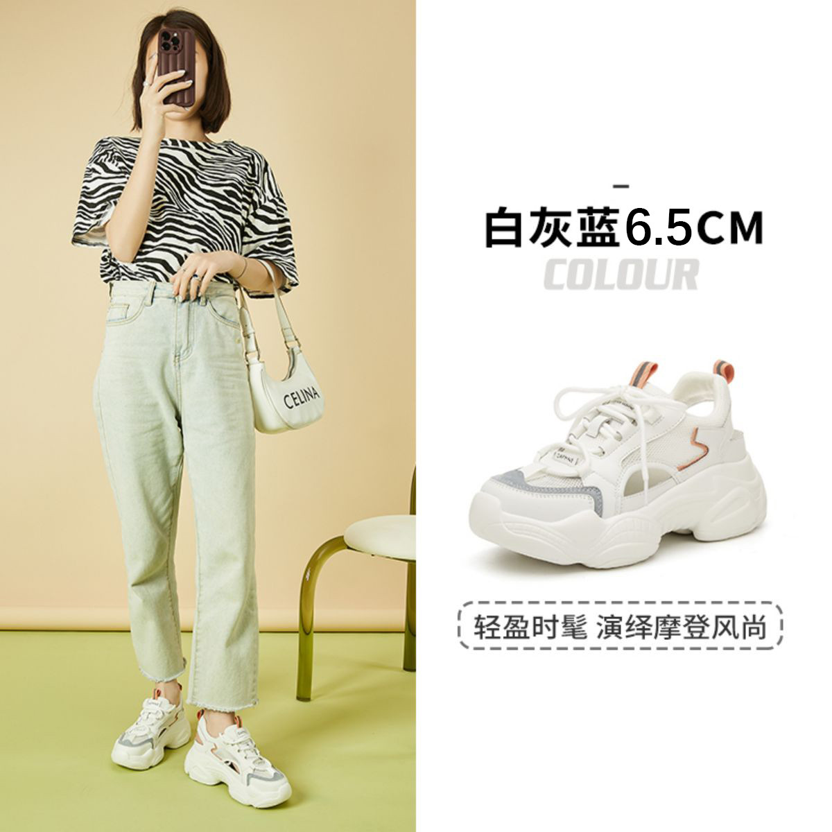 老爹鞋女显脚小轻便潮酷时尚厚底鞋春夏小个子增高女鞋休闲运动鞋 140951