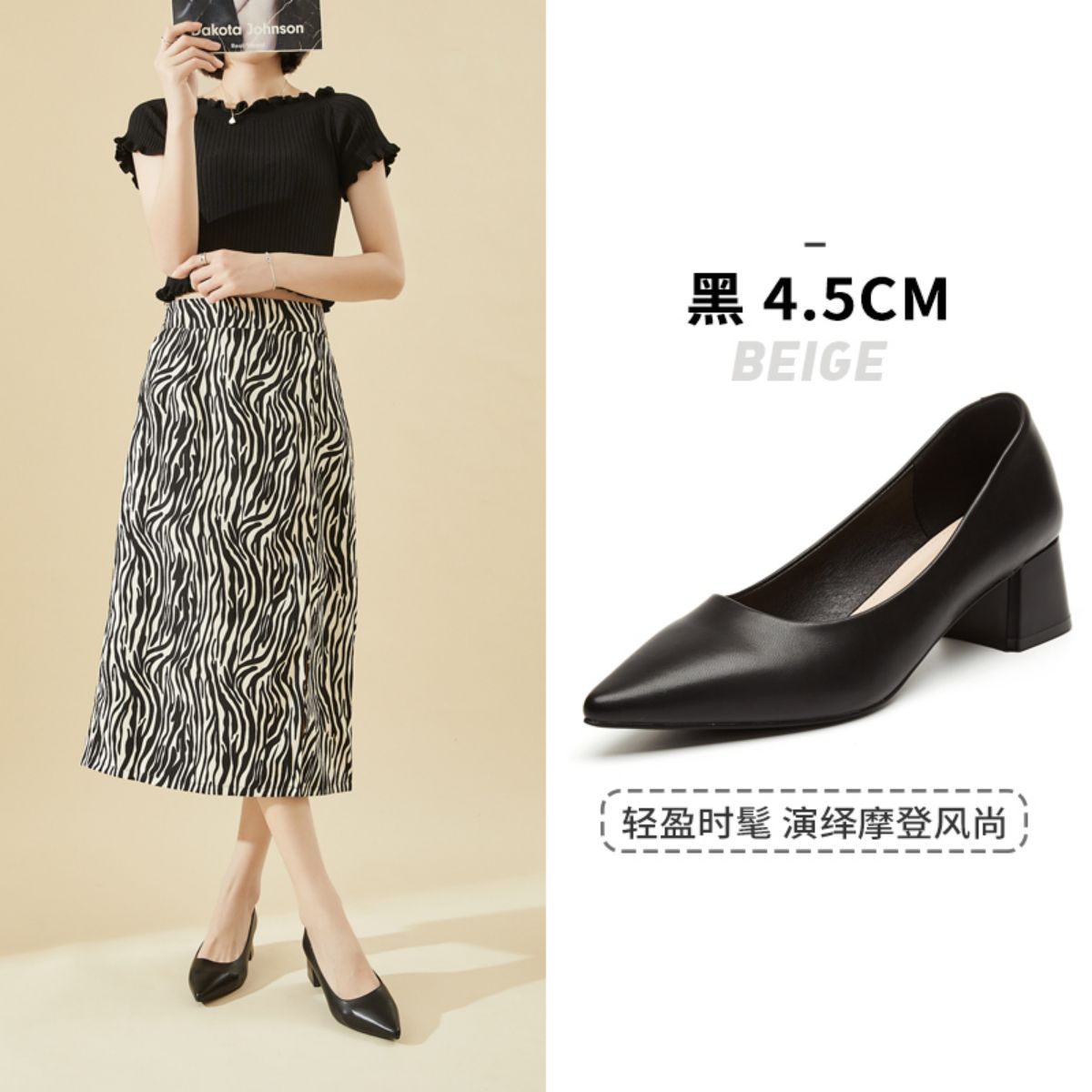 夏季粗跟女单鞋时装鞋复古简约日常休闲鞋百搭通勤鞋 963287