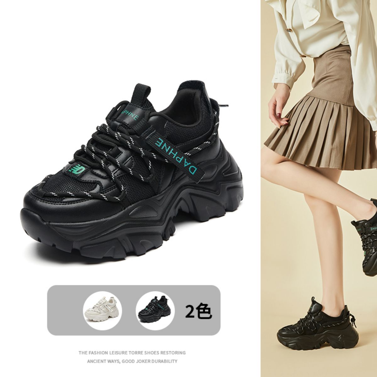 厚底老爹鞋女舒适透气时尚拼接网面鞋复古百搭运动休闲鞋女鞋子 589978