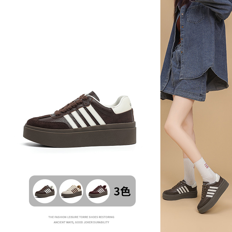 德训鞋女春夏舒适时尚板鞋厚底鞋复古风舒适户外百搭运动休闲鞋 142487