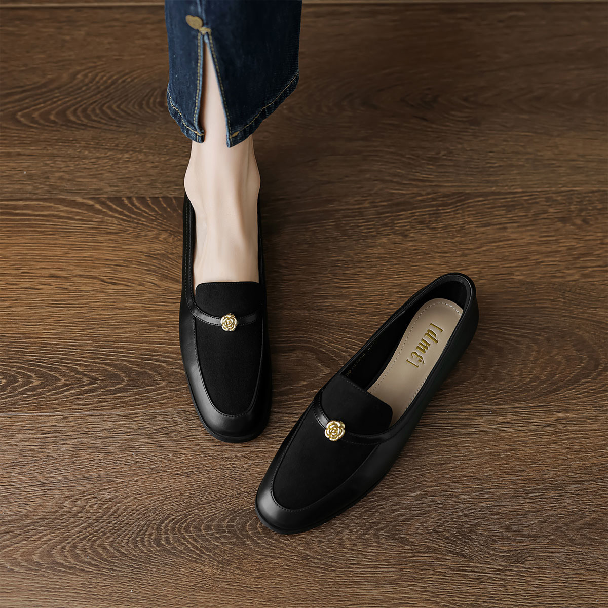 时尚简约气质高级感复古拼接玫瑰花深口乐福鞋女单鞋 252737