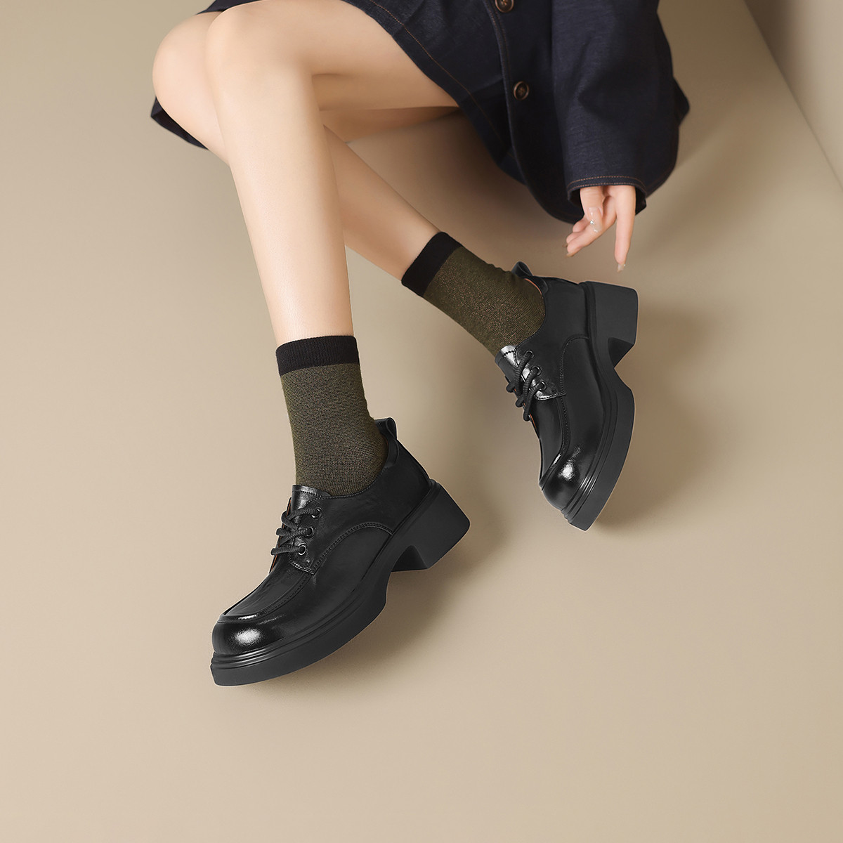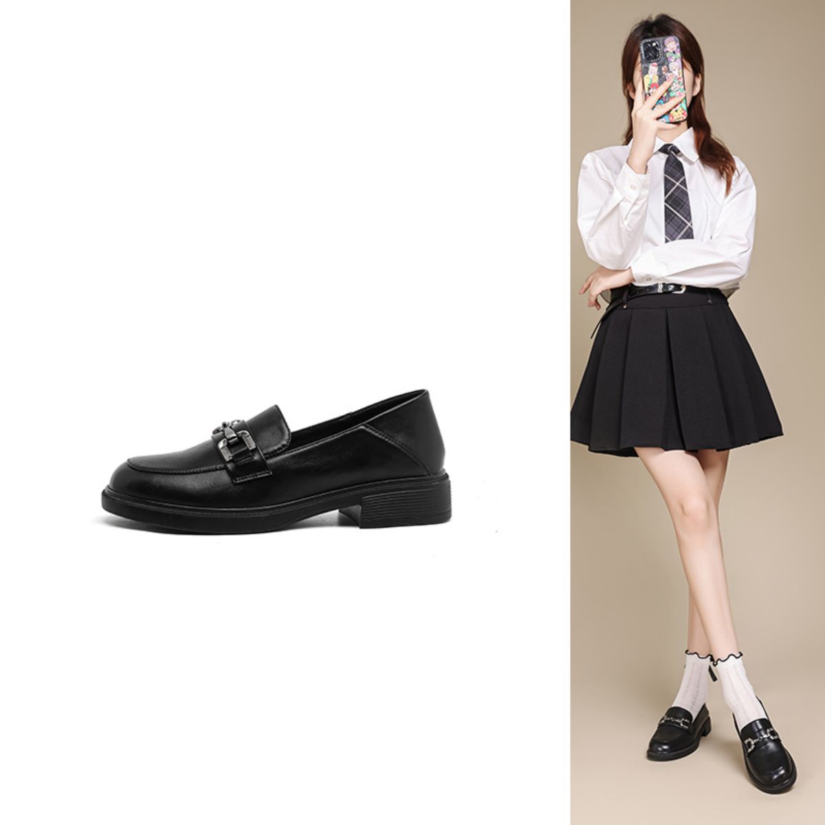 春夏乐福鞋女粗跟浅口时尚单鞋通勤鞋英伦风百搭JK制服鞋厚底鞋 595415