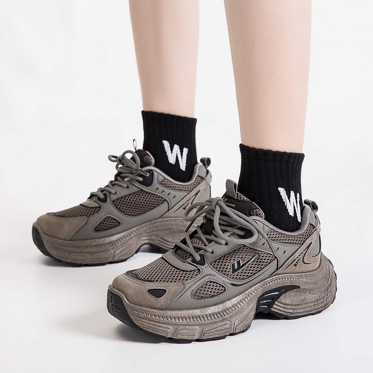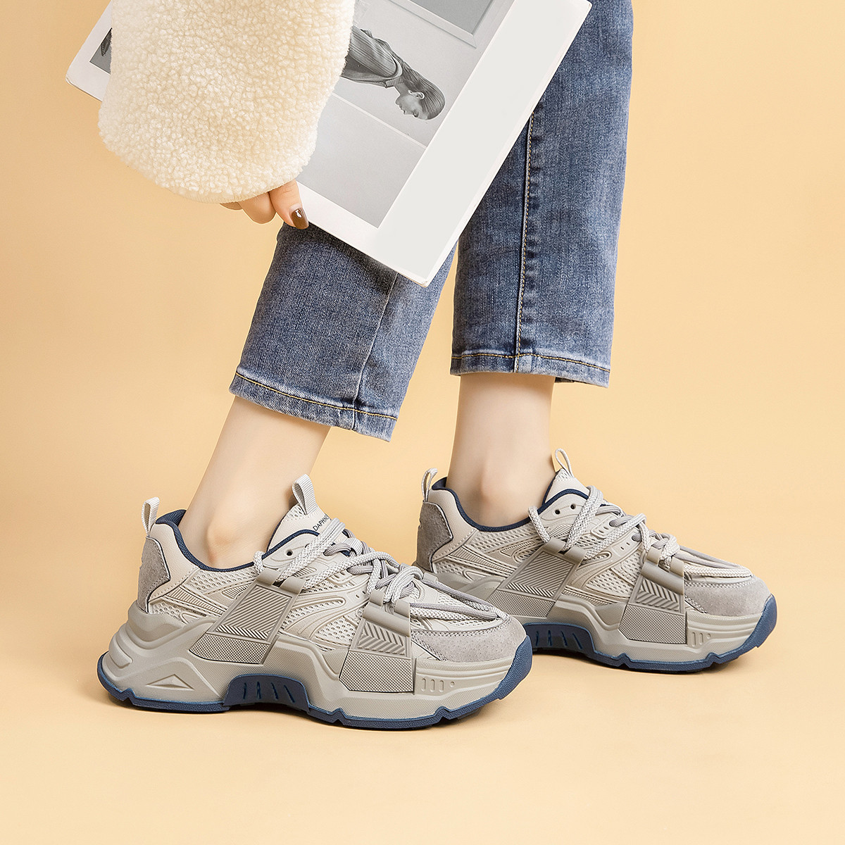 春季复古百搭网面透气显脚小运动休闲女鞋小个子厚底显高老爹鞋 757210