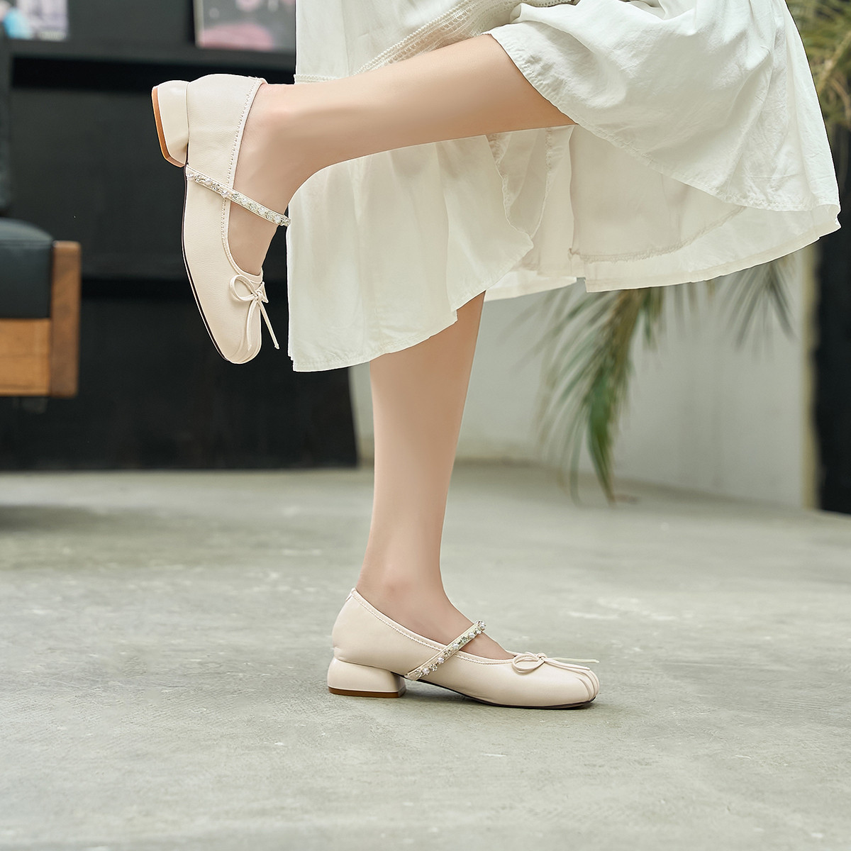 简约女鞋法式女鞋水钻一字带褶皱方头方跟玛丽珍鞋 481679