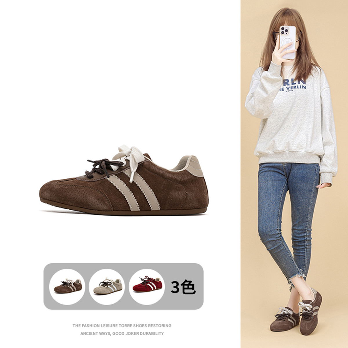 【时尚拼接】复古百搭德训鞋户外圆头运动鞋舒适软底女休闲鞋女鞋 821978