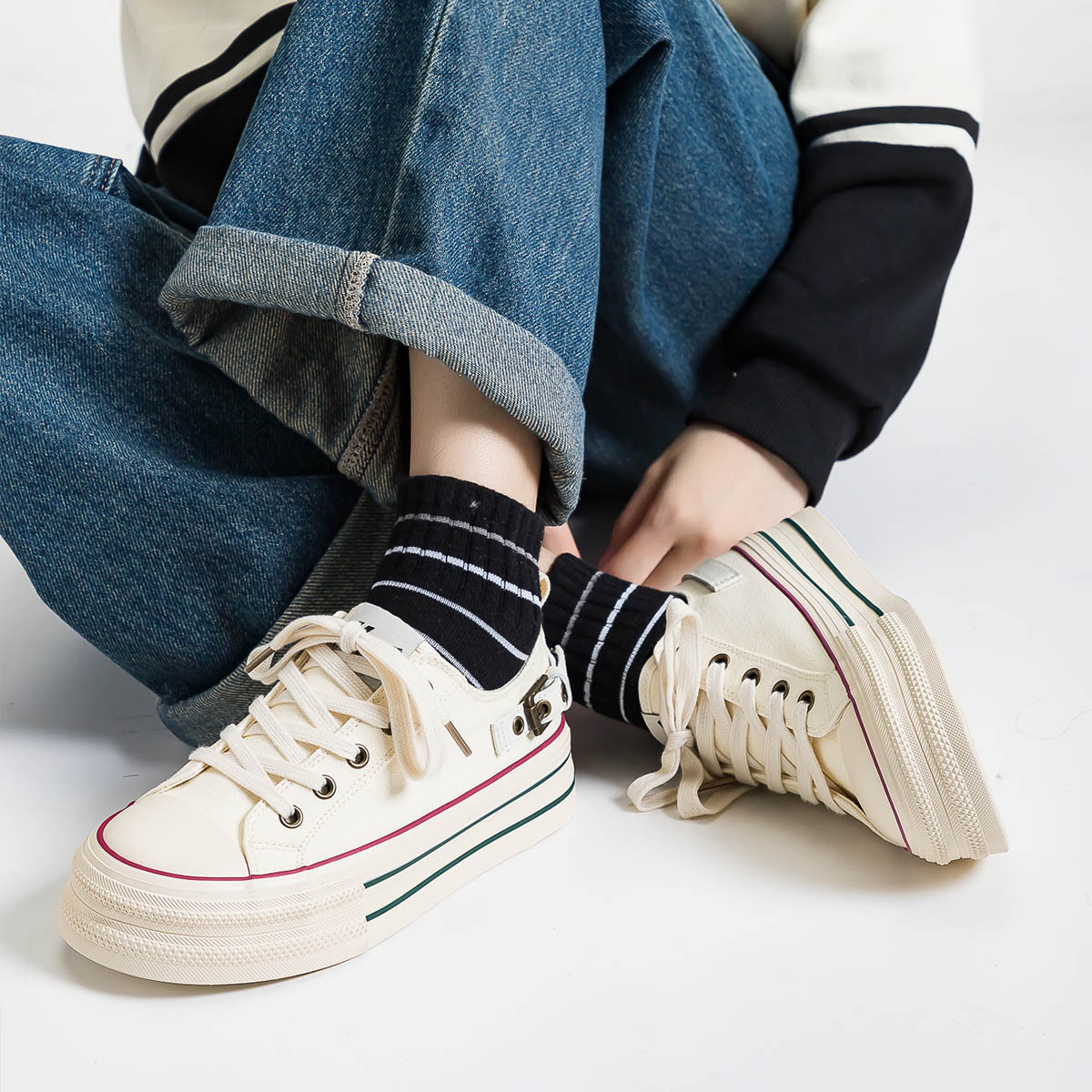 2025新款帆布鞋休闲鞋女鞋经典百搭厚底板鞋松糕鞋小白鞋女 744916