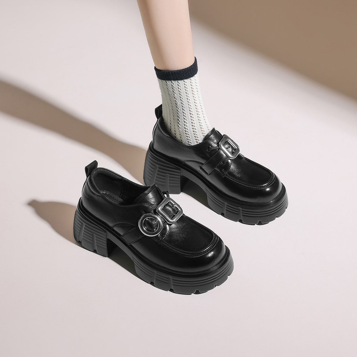 乐福鞋黑色单鞋厚底乐福鞋德比鞋简约英伦学院风女单鞋 378767