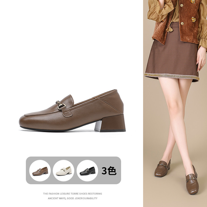 2025春夏学院风乐福鞋女粗跟浅口单鞋轻便一脚蹬通勤鞋JK鞋 014615