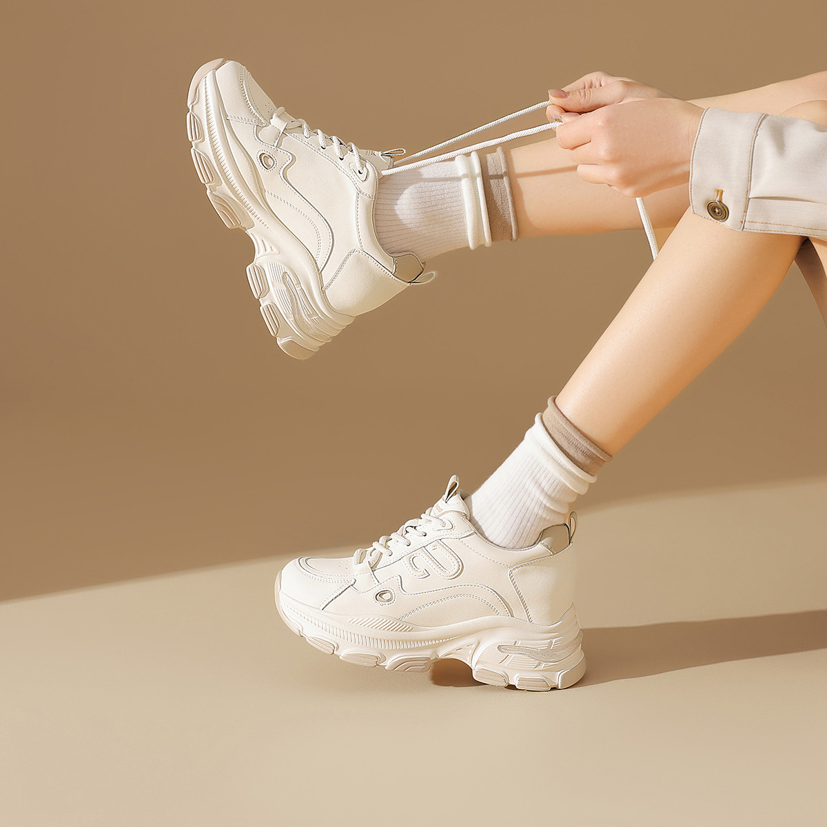 【潮流厚底】春夏季增高透气休闲鞋女时尚板鞋真皮垫小白鞋女鞋子 204506