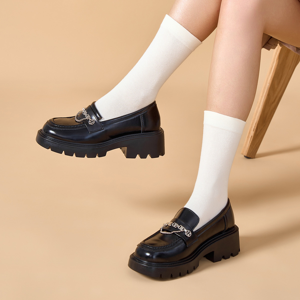 【英伦风小皮鞋】25春季新款女鞋一脚蹬乐福鞋女厚底增高单鞋女 871188
