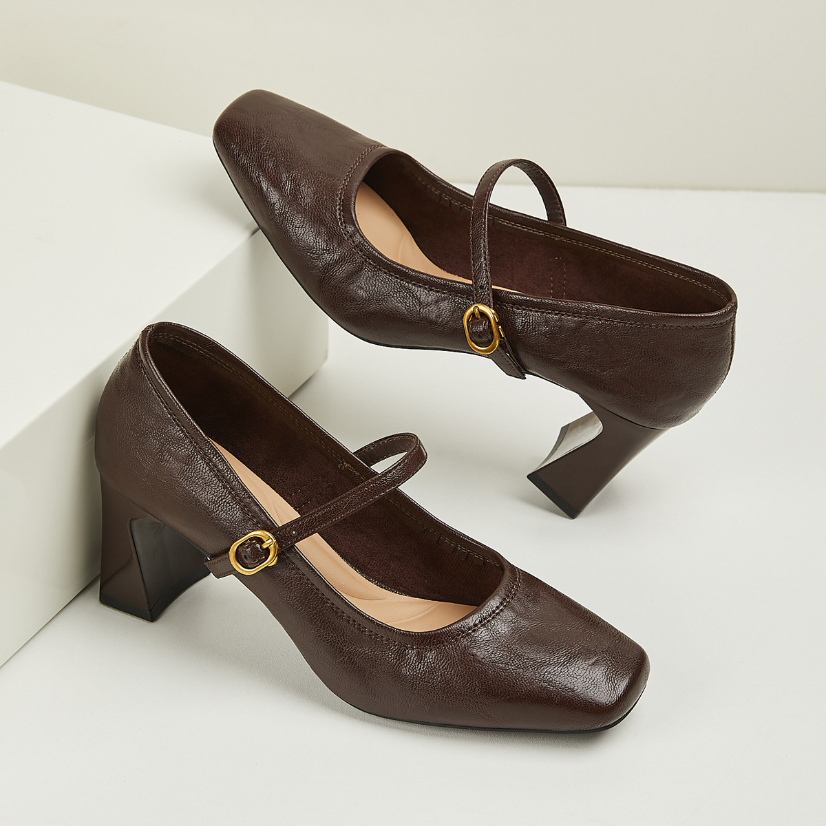 气质玛丽珍女鞋2025春秋新款粗跟百搭小皮鞋时装鞋子妈妈鞋女 194711