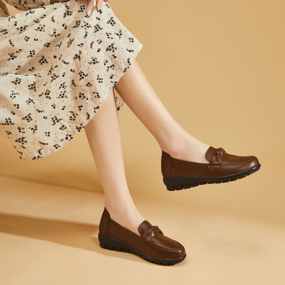 软底舒适妈妈鞋25年春秋季女鞋百搭通勤小皮鞋乐福鞋平底单鞋女 222295