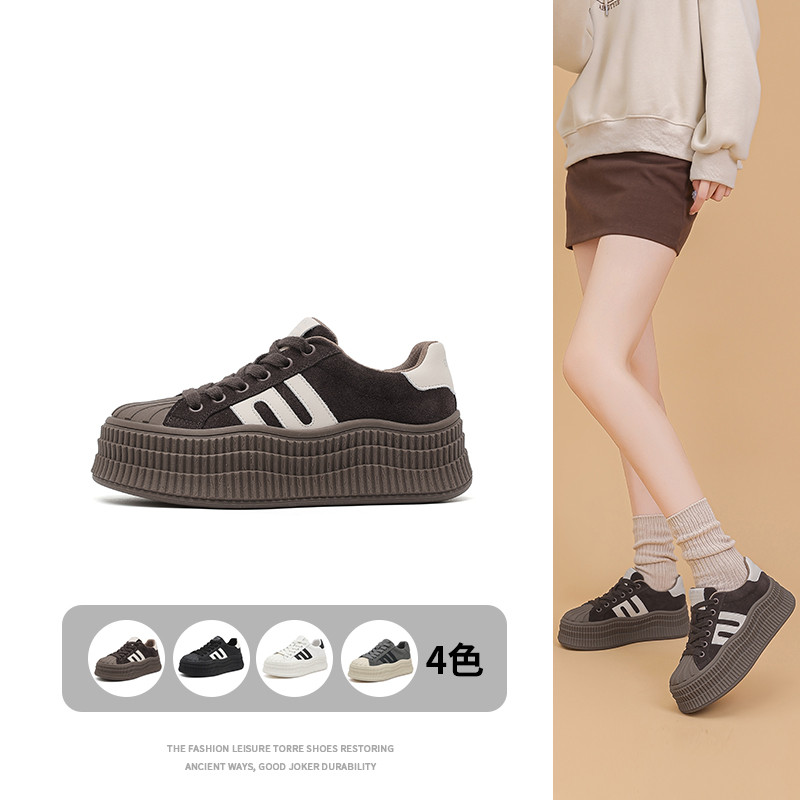德训鞋女春夏百搭复古风通勤鞋时尚板鞋厚底鞋轻便舒适休闲运动鞋 412375