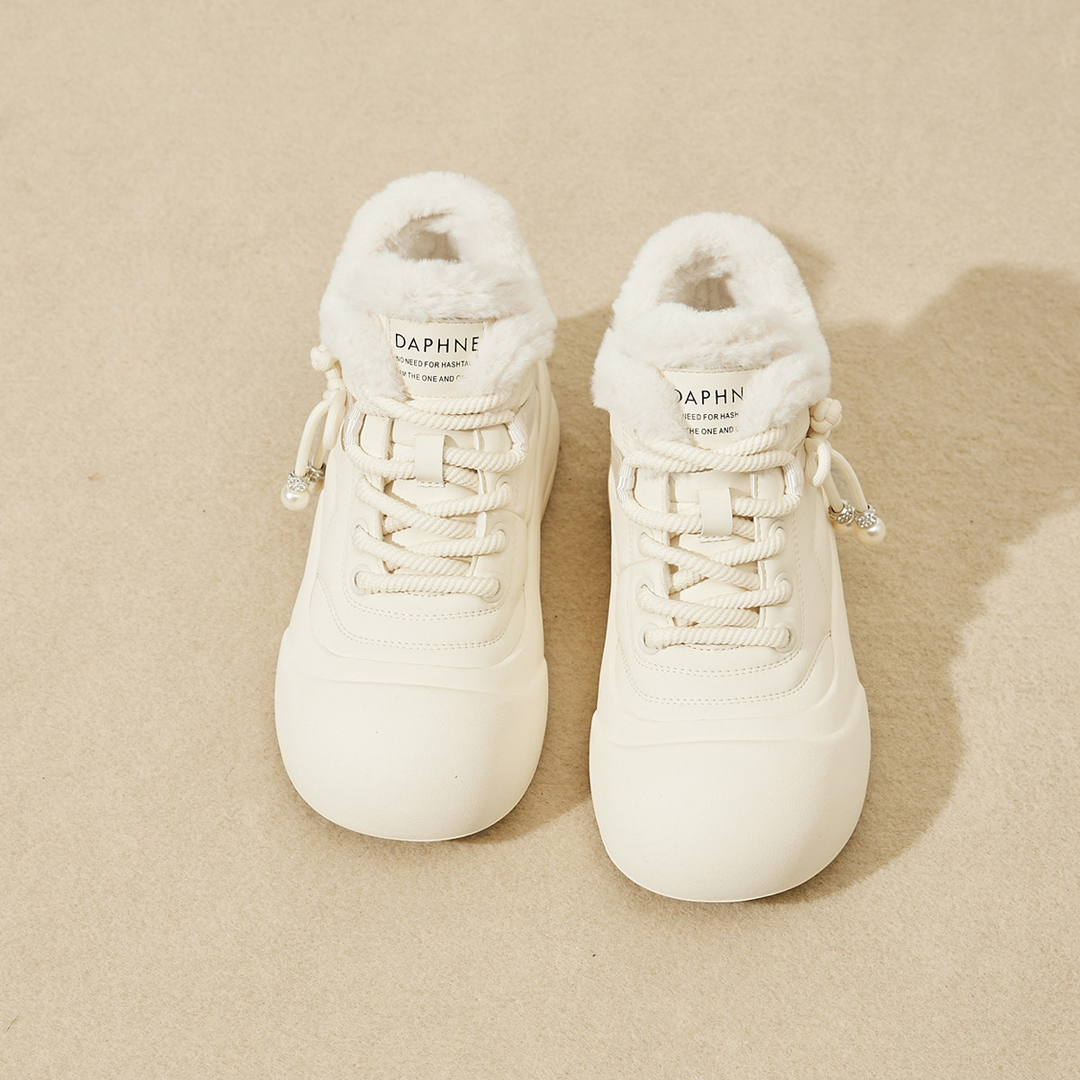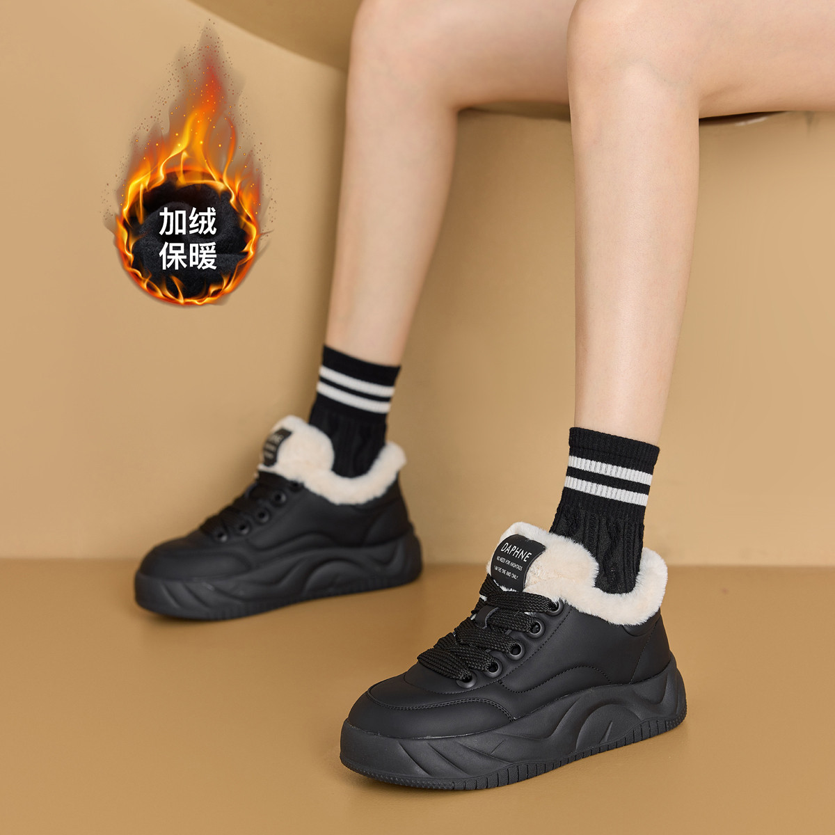 加绒加厚冬季防滑保暖面包鞋女厚底增高小白鞋板鞋女东北大棉鞋女 198615