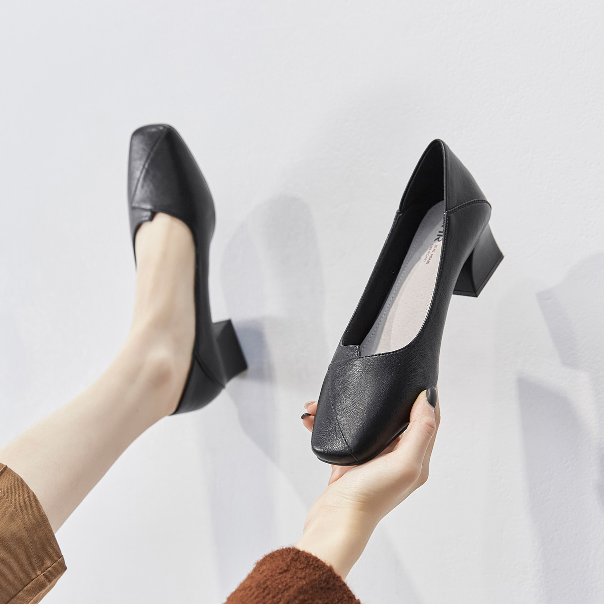 【蝴蝶结】一脚蹬粗跟时尚女鞋通勤鞋女浅口女士单鞋子女单鞋女鞋 211008