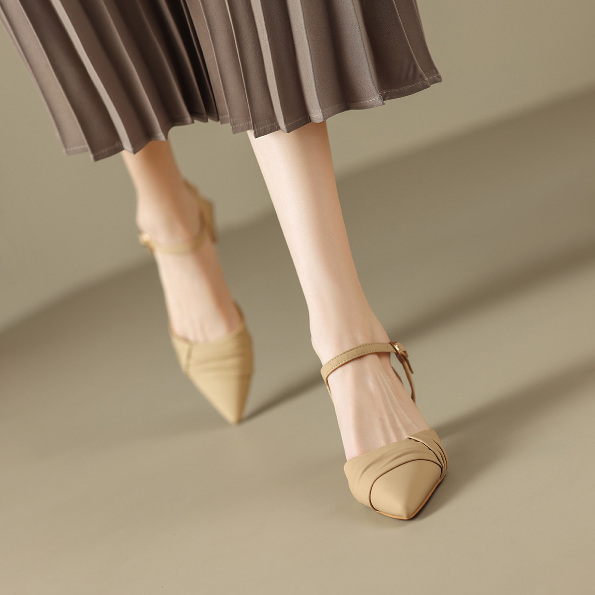 【褶皱帮面】气质尖头粗跟鞋包头后空凉鞋高级感女士凉鞋夏季凉鞋 234240