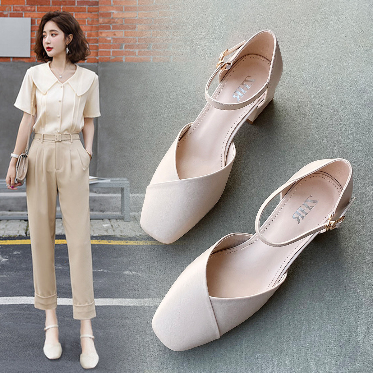 【售完即止】粗跟包头凉鞋女气质一字带凉鞋女凉鞋女夏季凉鞋女鞋 245824