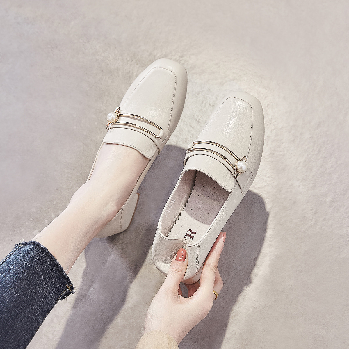 【珍珠扣件】一脚蹬职业通勤鞋女小皮鞋子女春秋乐福鞋女单鞋女鞋 604992