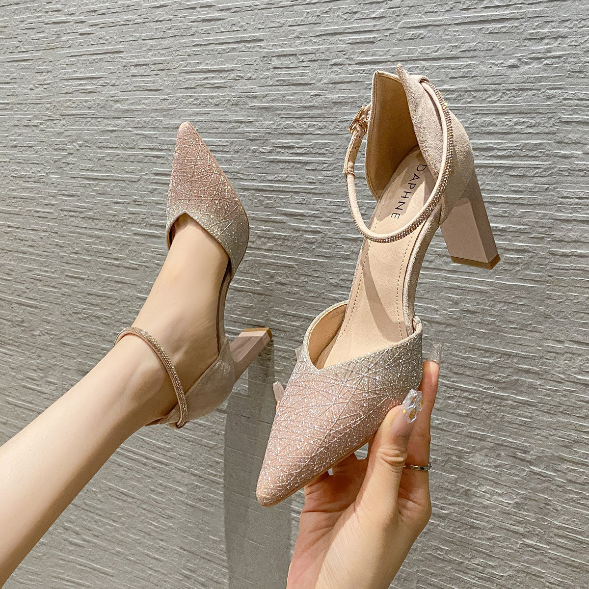 尖头粗跟高跟鞋女春夏款女鞋2025法式轻奢甜美伴娘礼服单鞋女 054487
