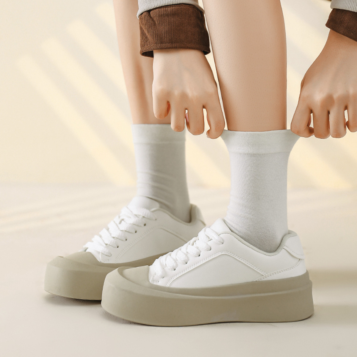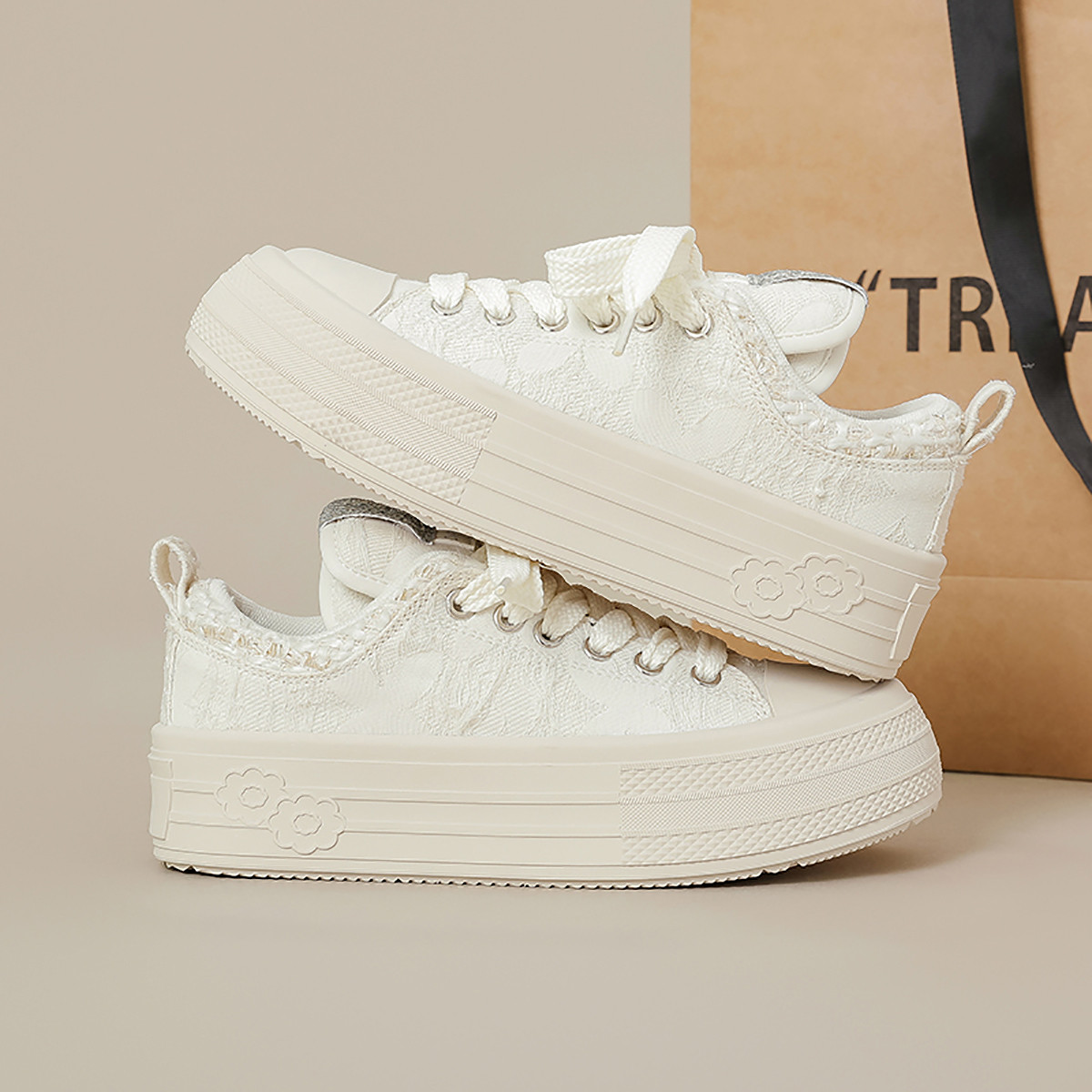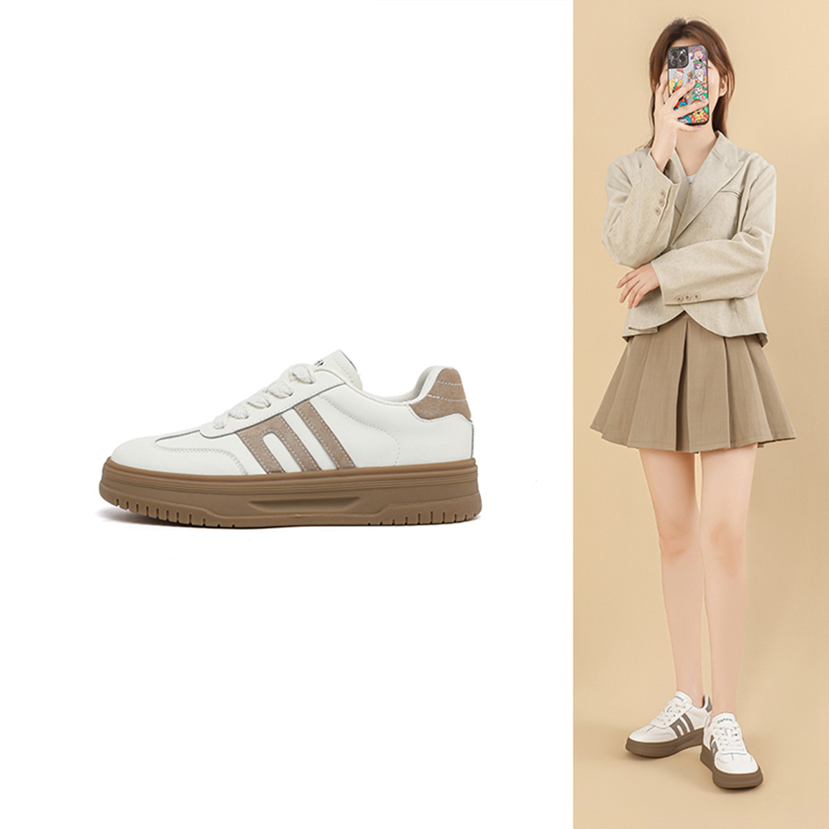 厚底圆头面包鞋秋季新款可爱休闲百搭小白鞋奶茶色丑萌板鞋女 194842