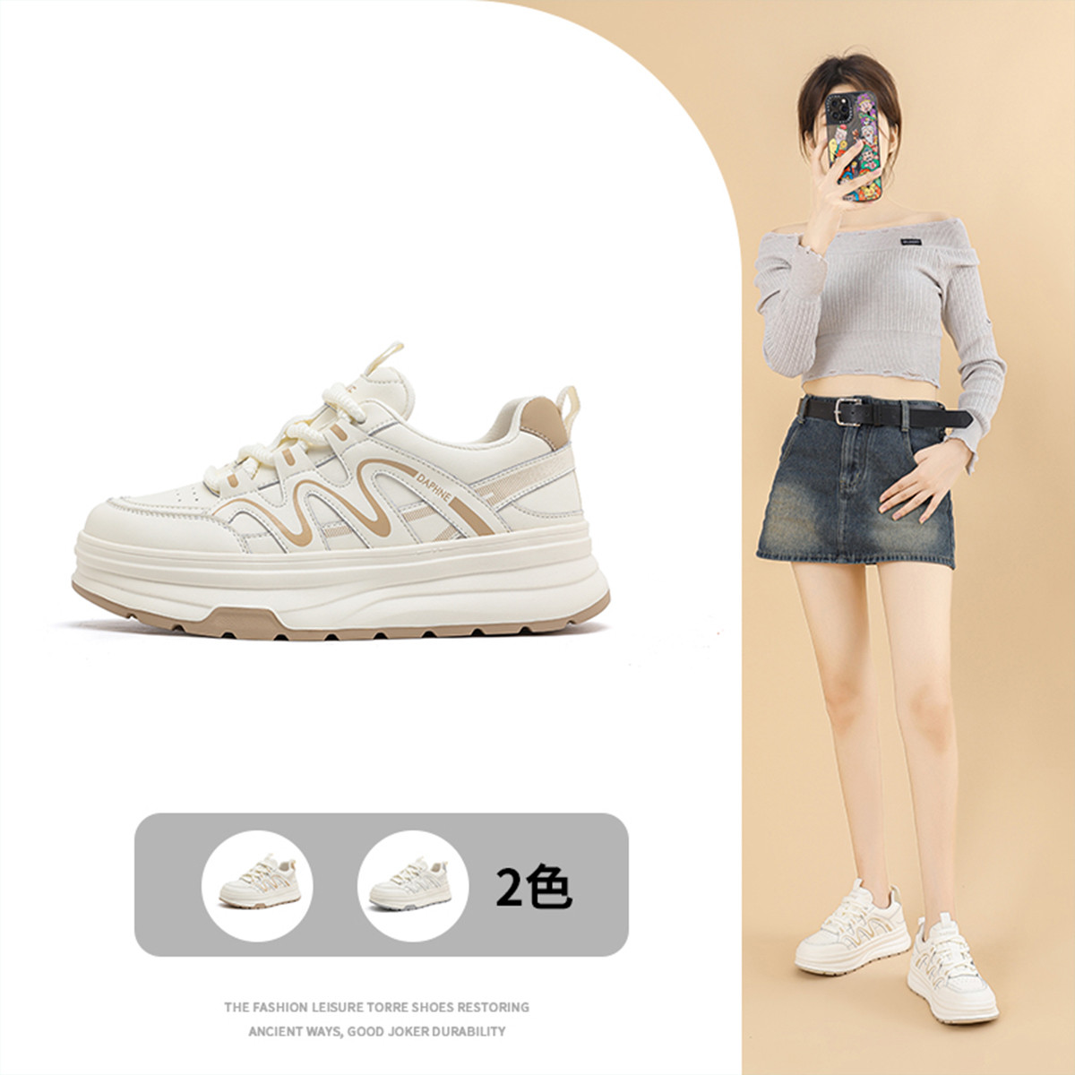 德训鞋女春夏青春学院风运动休闲鞋厚底鞋轻便百搭显脚小时尚板鞋 459031