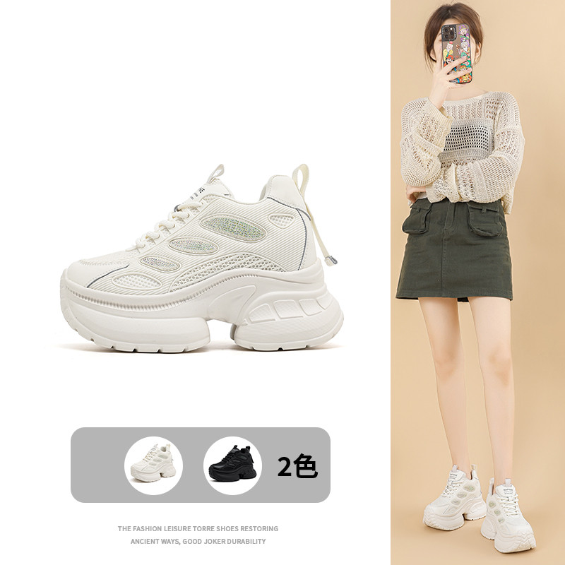春夏老爹鞋女透气网面鞋小个子内增高厚底鞋舒适运动休闲鞋小白鞋 506583