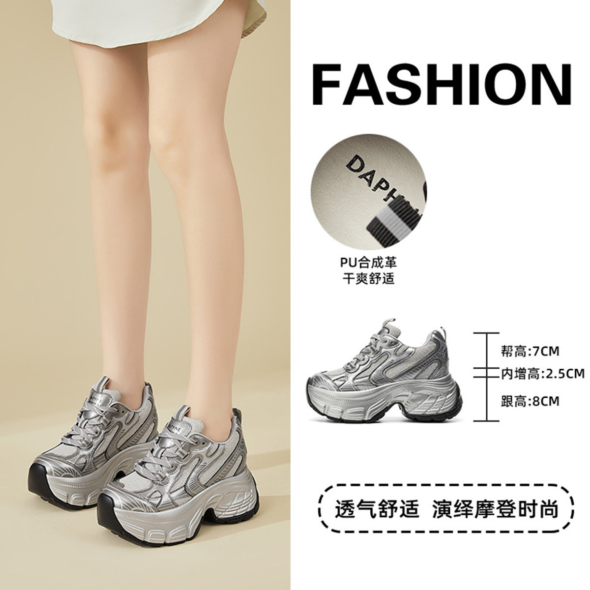 老爹鞋女显脚小轻便潮酷时尚厚底鞋春夏小个子增高女鞋休闲运动鞋 140951