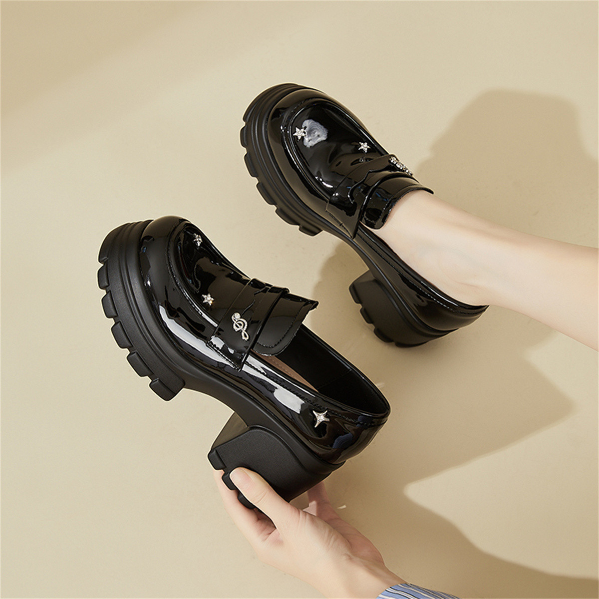 【秒增8CM】学院风JK制服鞋一脚蹬小个子增高乐福鞋单鞋女鞋 227034