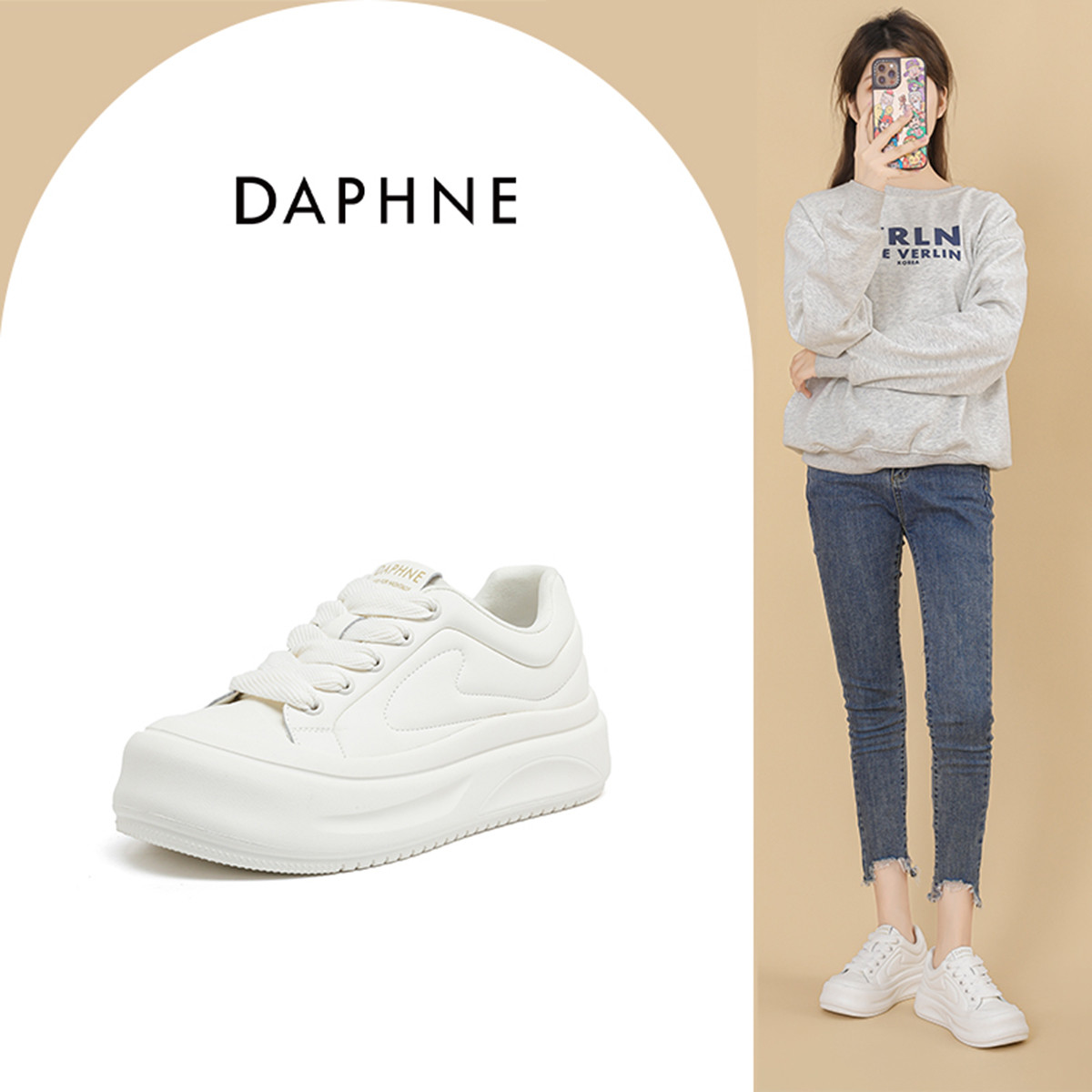 【爆款推荐】百丽行云新中式芭蕾德训鞋女鞋子休闲运动小白鞋 268698