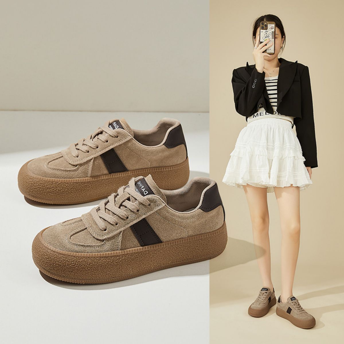 【舒软轻便】复古德训鞋女25春季款百搭平底板鞋女休闲鞋子女鞋 793236