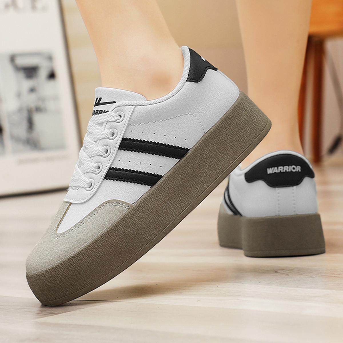 春夏简约风小白鞋女松糕底百搭时尚板鞋厚底鞋轻便透气运动休闲鞋 363223