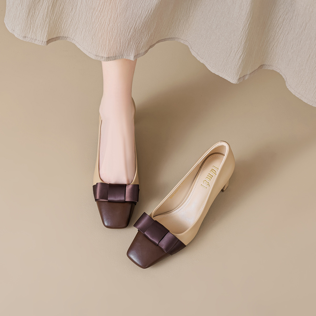 2024秋季时尚简约气质百搭撞色拼接优雅蝴蝶结高跟女单鞋 317121