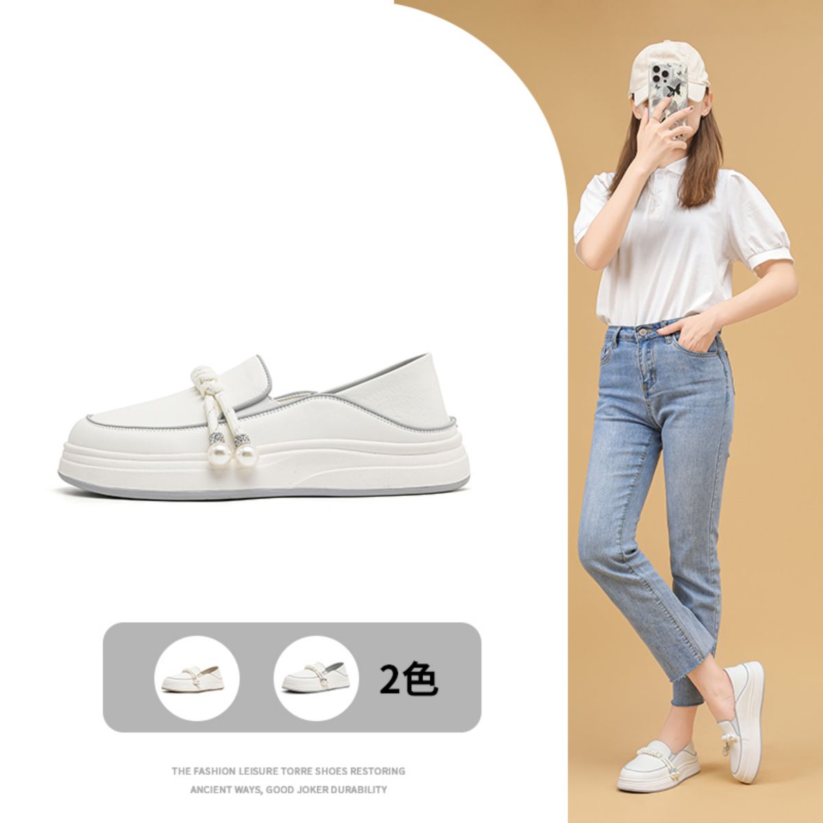 女鞋春夏款薄款透气豆豆鞋小白鞋舒适百搭轻便休闲鞋厚底时尚板鞋 491991