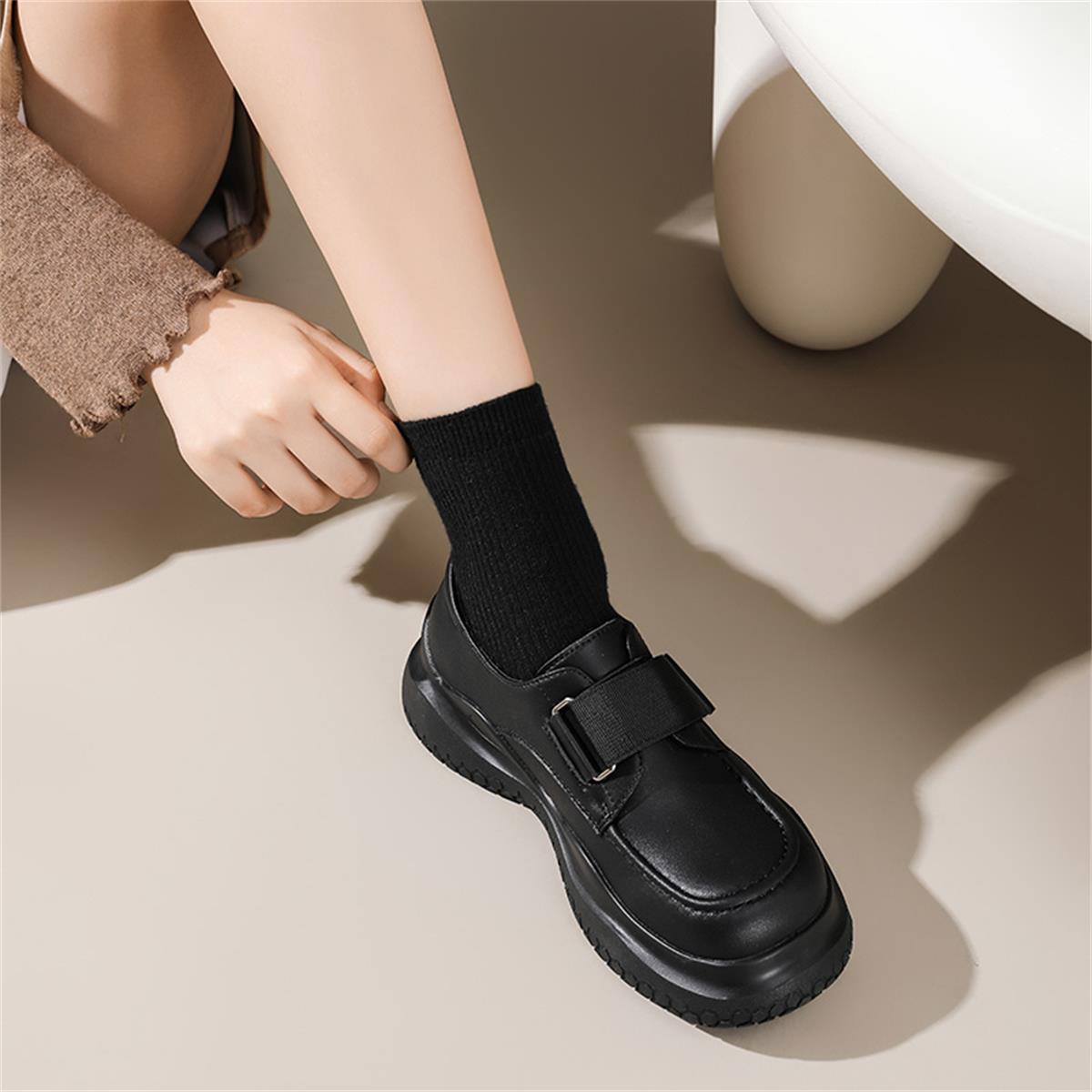 春秋英伦风厚底乐福鞋魔术贴百搭气质女单鞋百搭休闲鞋女鞋 220442