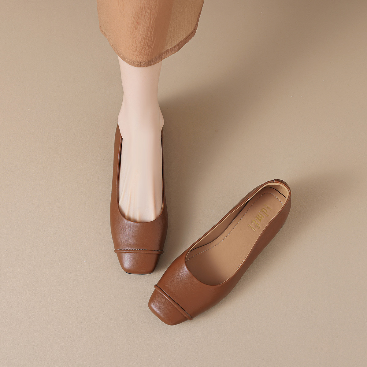 2024秋季百搭通勤简约日常舒适方跟纯色拼接方头女单鞋通勤鞋 358081