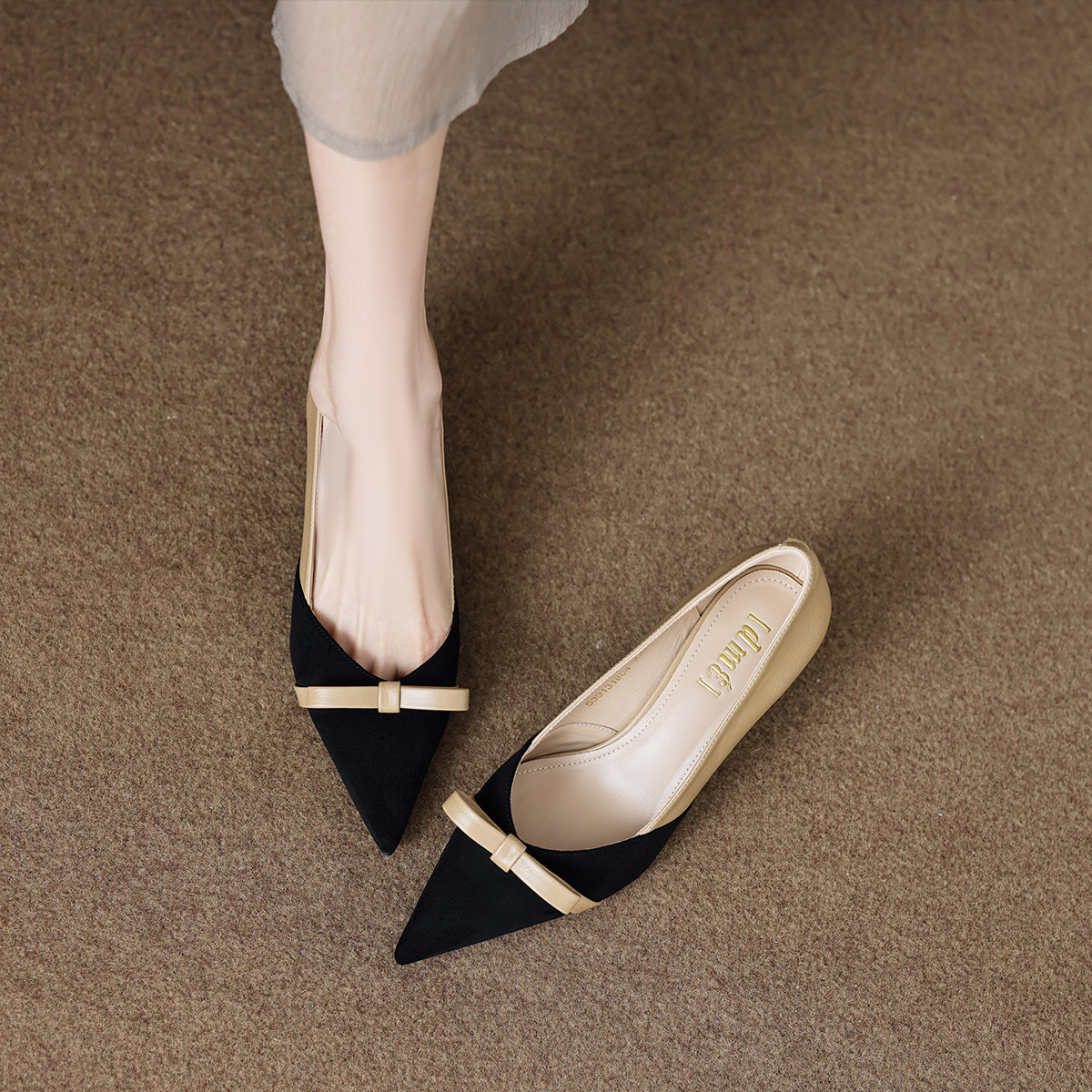 2024年秋季简约百搭高级感气质女人绒面拼接精致蝴蝶结细跟女 176257