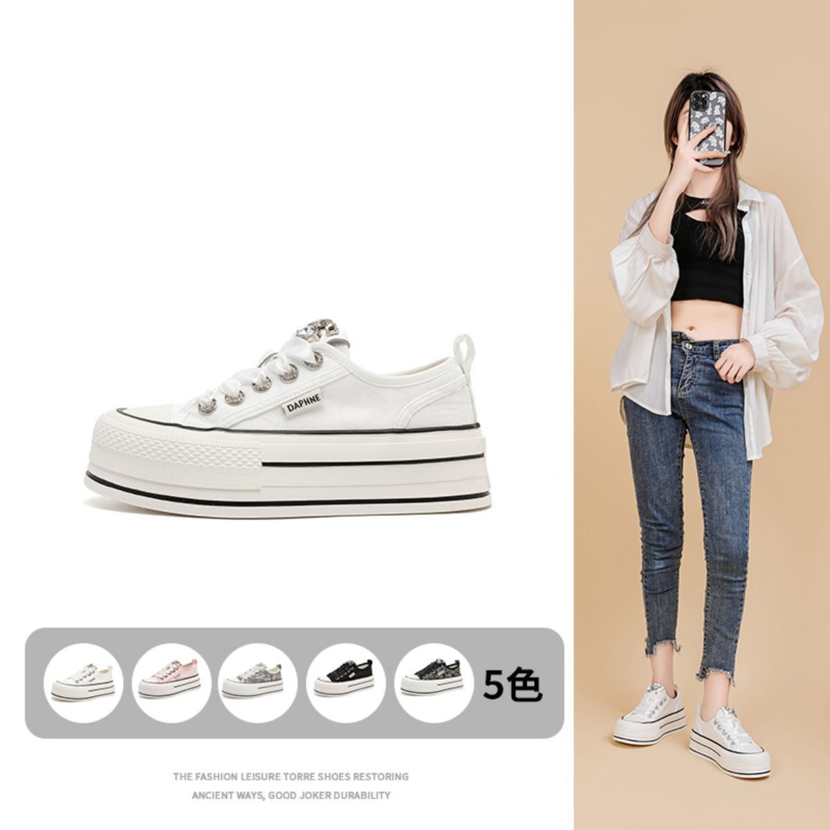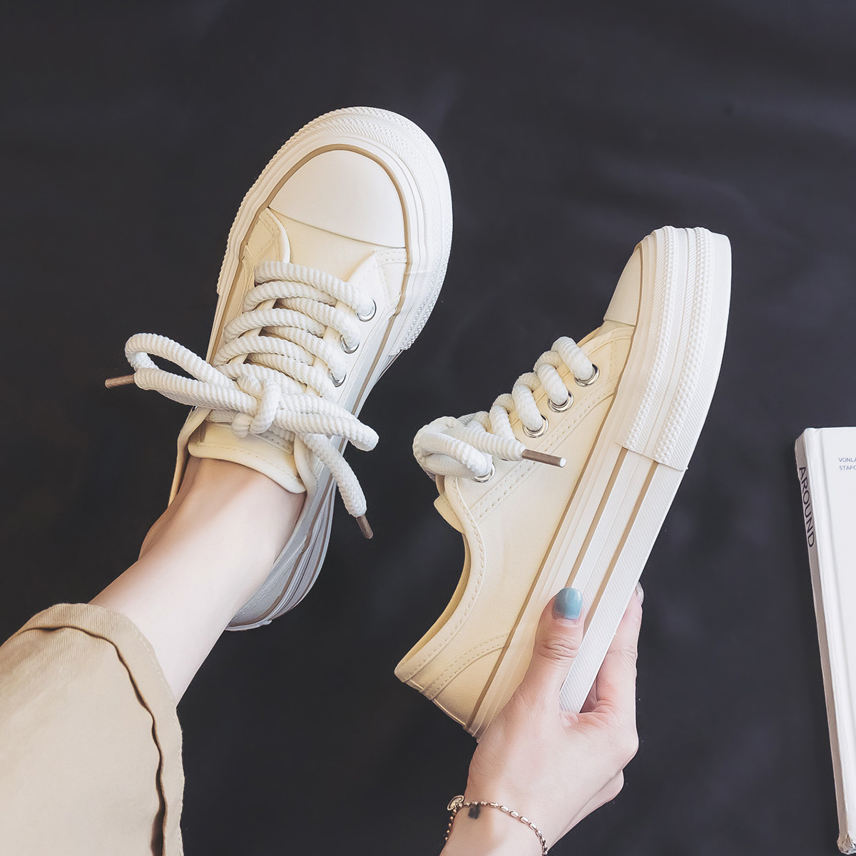 低帮帆布鞋女款爆款厚底增高休闲鞋松糕百搭简约学生板鞋 127252