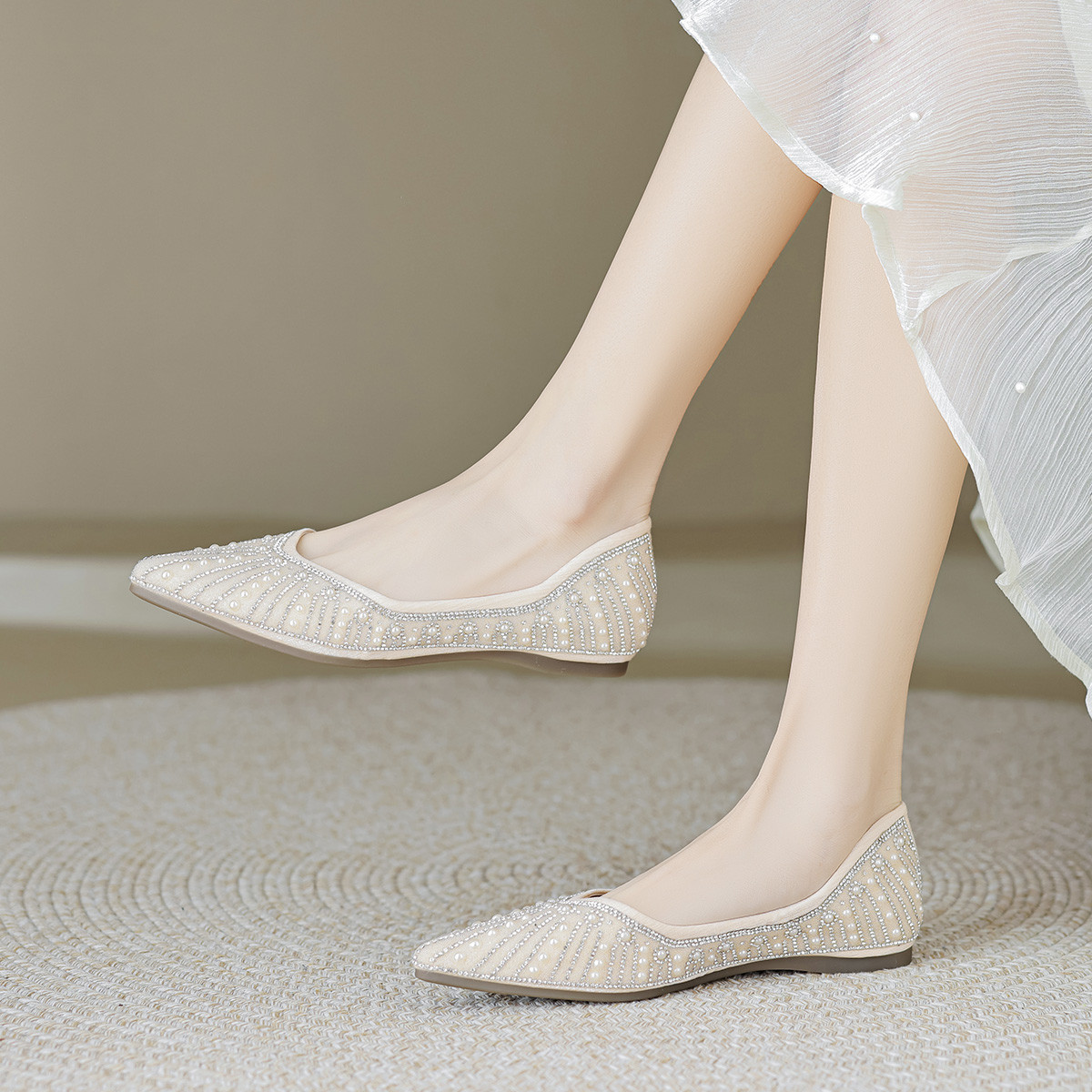 春优雅气质尖头软底浅口女单鞋珍珠闪耀礼服鞋婚鞋 933953