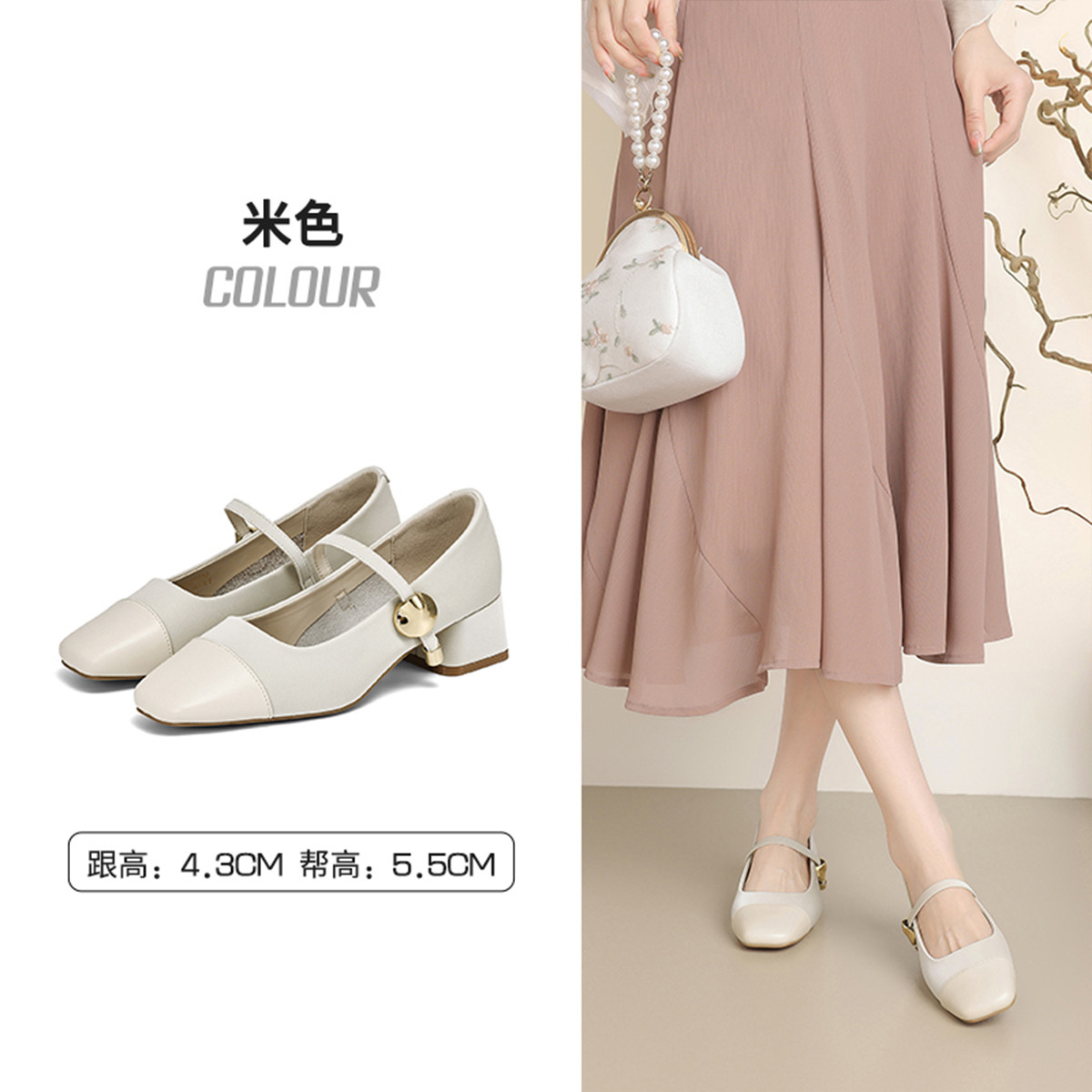 【质感方扣】新中式小皮鞋子气质通勤鞋夏季款玛丽珍鞋女单鞋女 048512