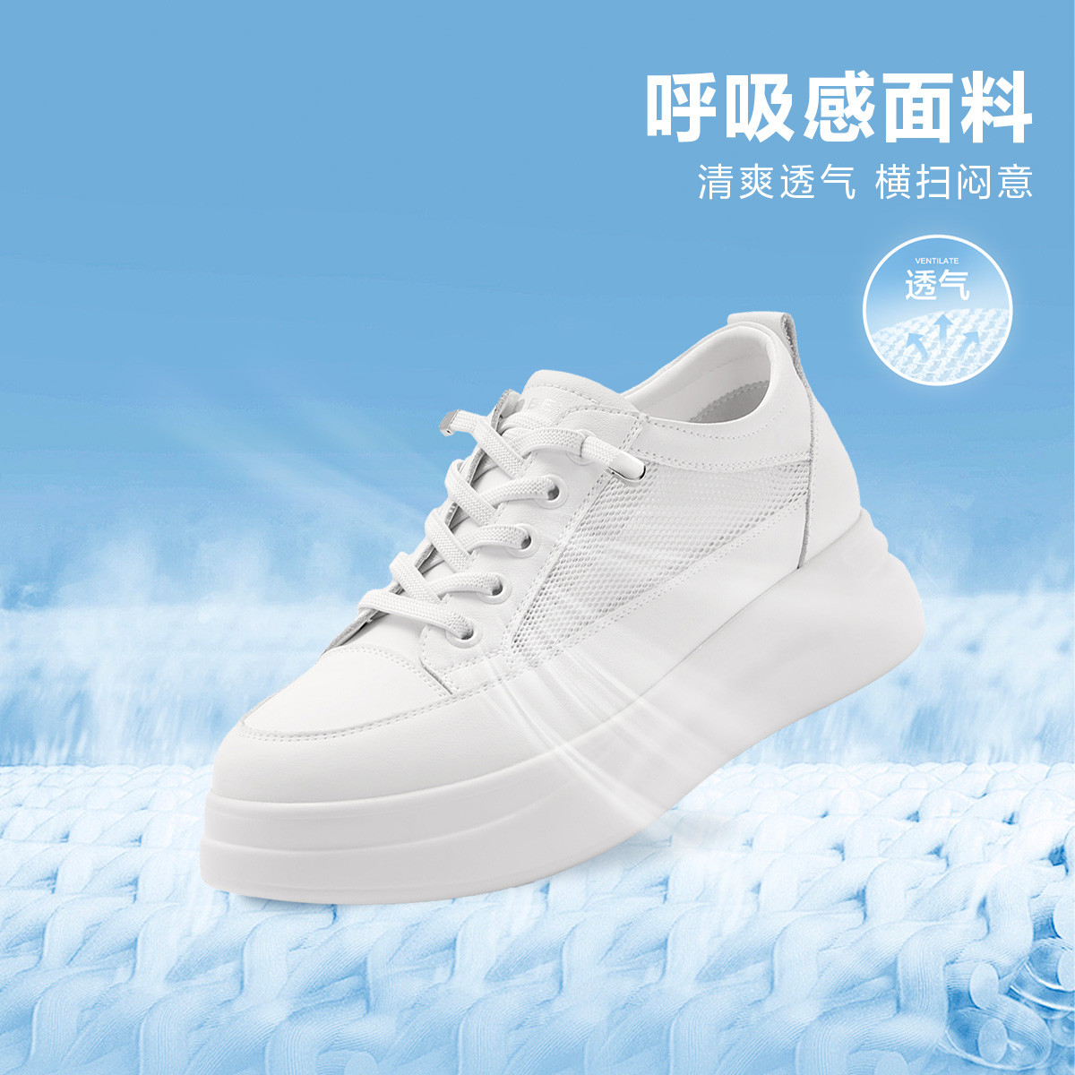 【潮流厚底】春夏季增高透气休闲鞋女时尚板鞋真皮垫小白鞋女鞋子 204506