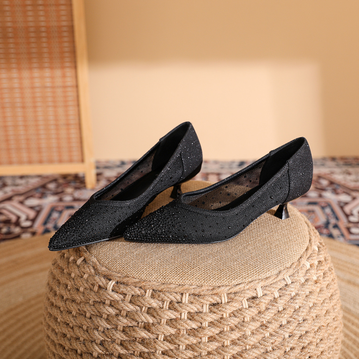 细跟高跟鞋女2025新款春夏网纱透气仙女风配裙水钻尖头单鞋女 779671