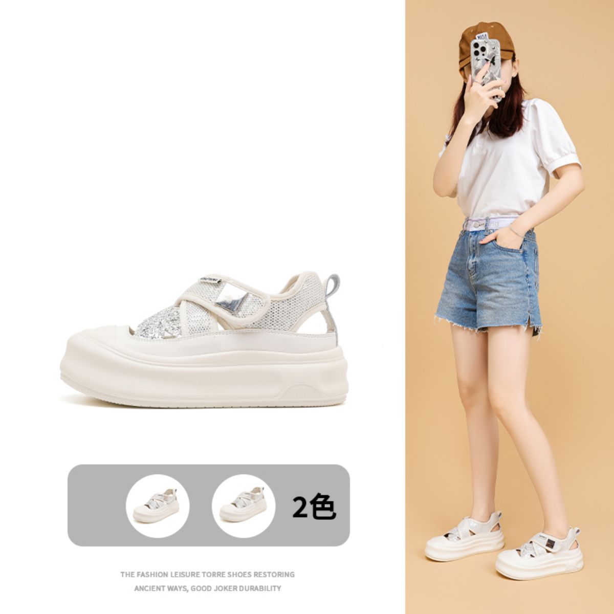 春夏镂空透气时尚板鞋女外穿运动凉鞋舒适户外运动休闲鞋厚底鞋女 079639