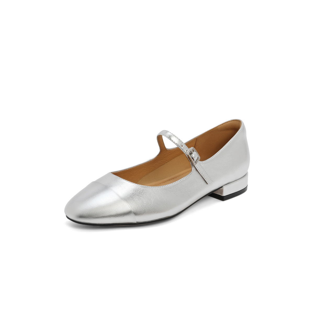 百丽复古一字带银色玛丽珍鞋晚晚鞋子平底单鞋 447258