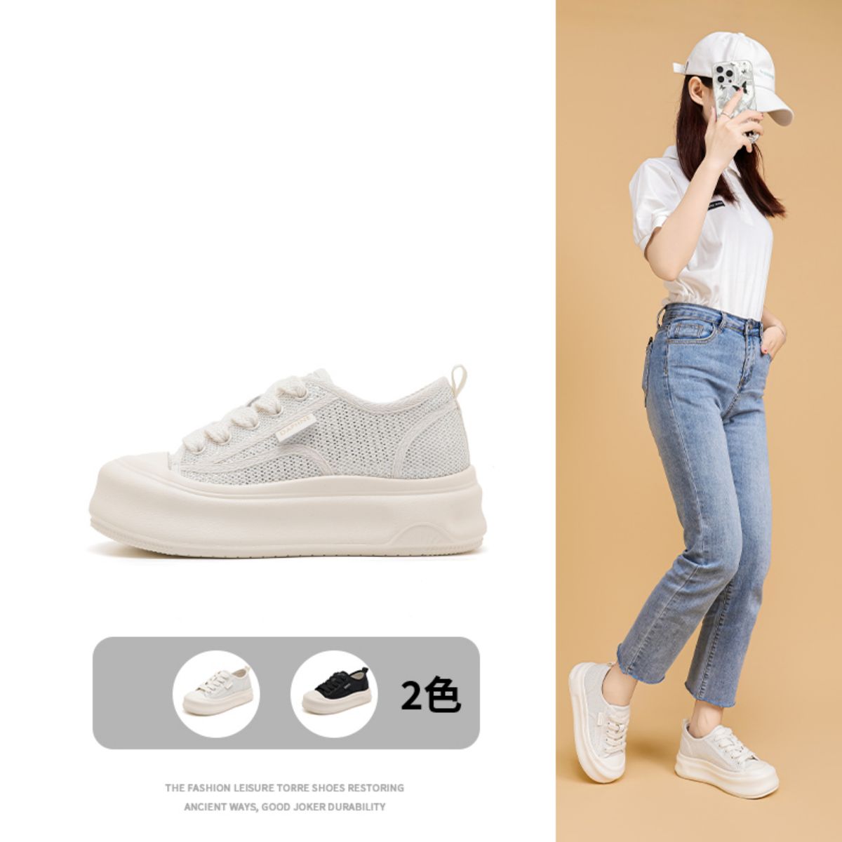 春夏时尚板鞋女简约风薄款透气户外运动休闲鞋厚底鞋轻便学生鞋 743767