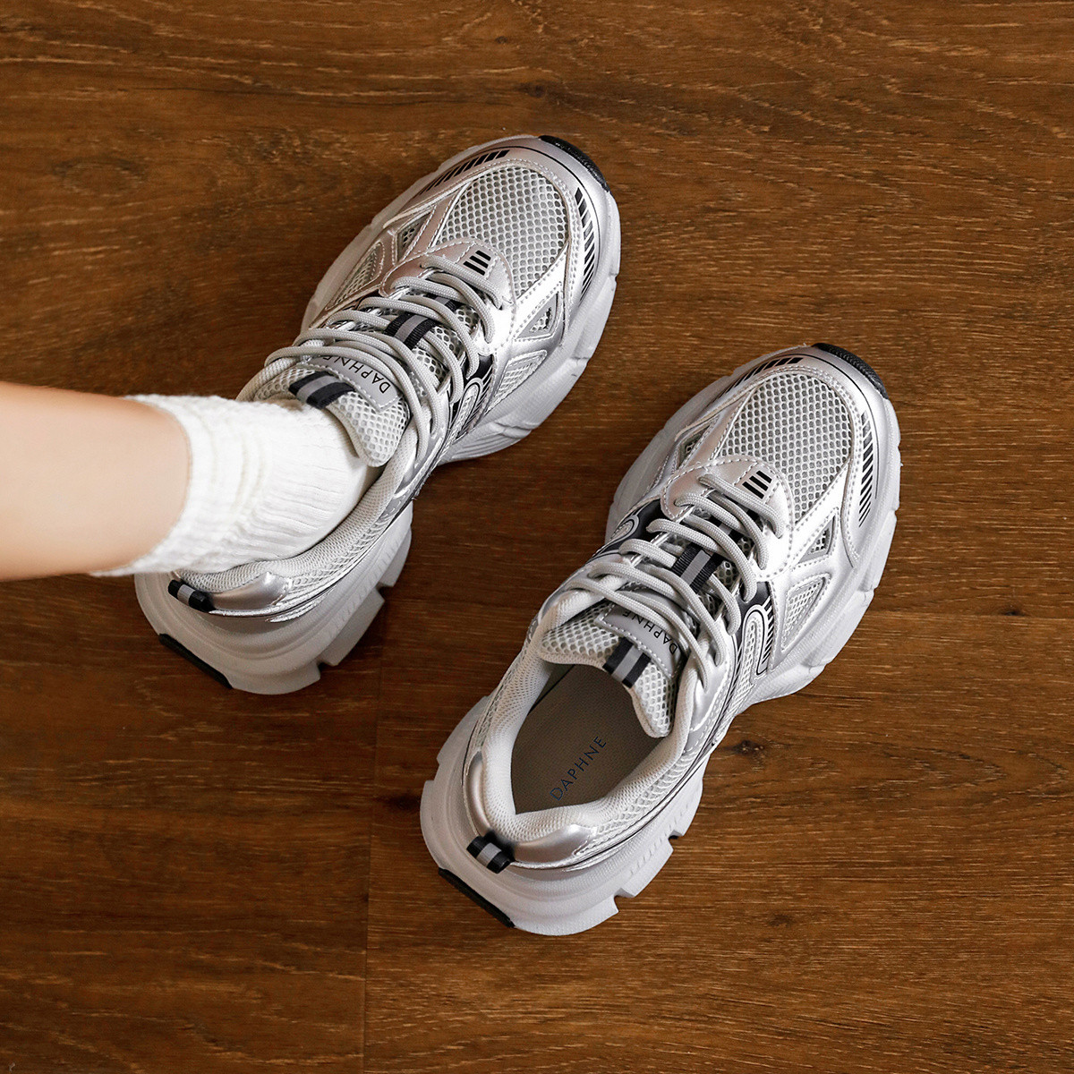 金属银复古厚底老爹鞋女网红百搭休闲鞋高颜值舒适网面鞋运动鞋女 441434