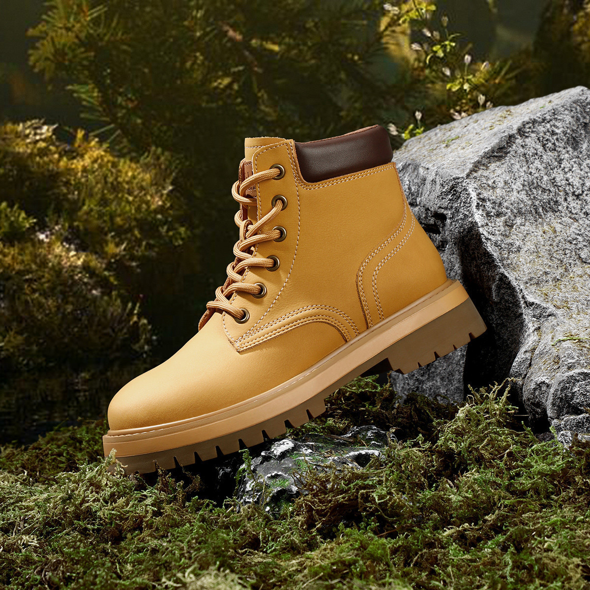 百丽大黄靴女靴子短靴厚底马丁靴女款加绒保暖工装靴 162394