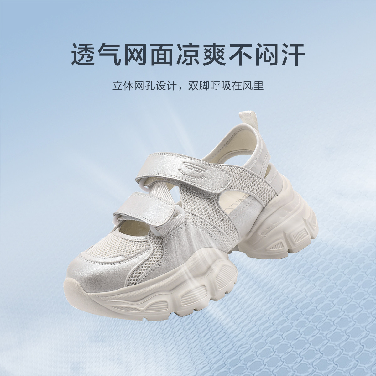 百丽透气网面厚底银色老爹鞋女鞋子春季涉水运动凉鞋 061466