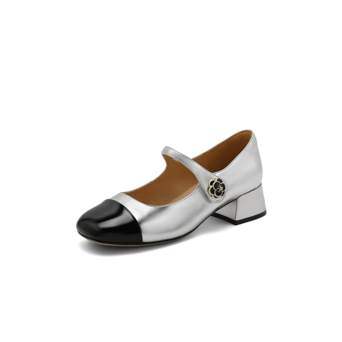 【时尚拼色】25年新款玛丽珍鞋法式通勤鞋浅口粗跟休闲单鞋女鞋 432154