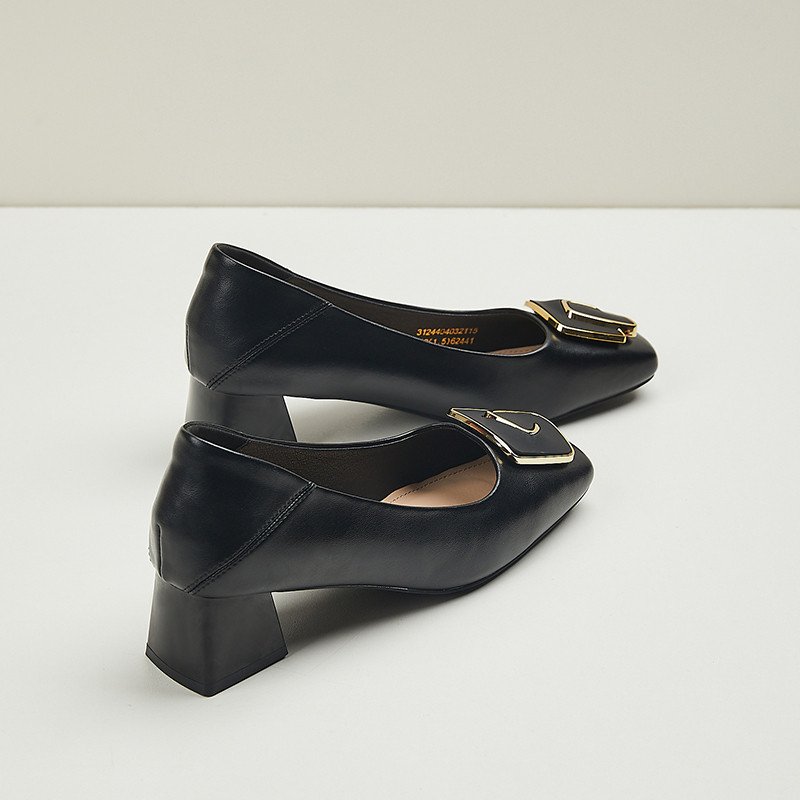 【舒适耐穿】春季浅口粗跟通勤真皮垫单鞋气质百搭通勤鞋女鞋 444442